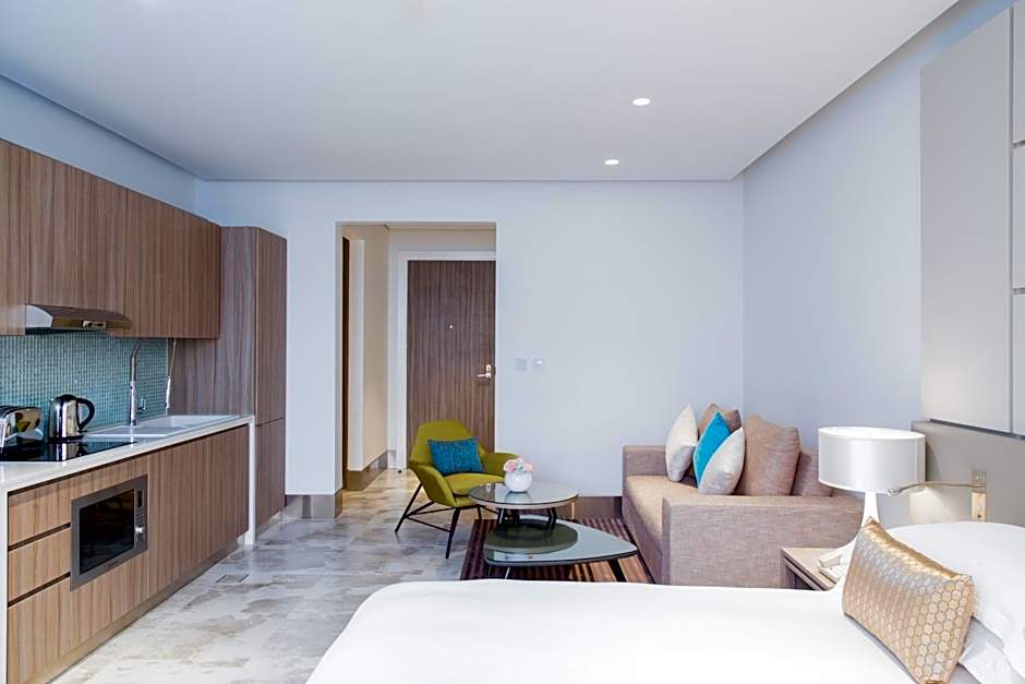 The private pool is the special feature of this apartment. This spacious apartment consists of a kitchen, a seating area, 1 separate bedroom and 1 bathroom with a walk-in shower and a bath. Meals can be prepared in the kitchen, which comes with a stovetop, a refrigerator, kitchenware and an oven. The air-conditioned apartment provides a flat-screen TV with cable channels, a washing machine, soundproof walls, a mini-bar as well as city views. The unit offers 1 bed.